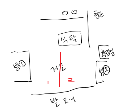 방이 2개라고 2명이 사는 것이 아니라 거실을 나눠서 4명이 살기도하고 발코니를 개조해서 방으로 만들기도하고